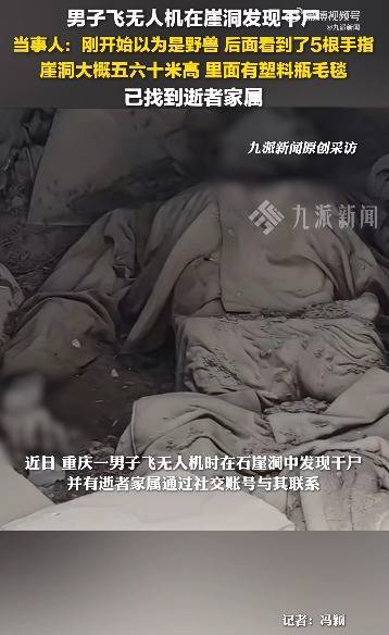 近日,重庆一男子飞无人机时在石崖洞中发现干尸,并有逝者家属通过社交账号与其联系,引发关注。